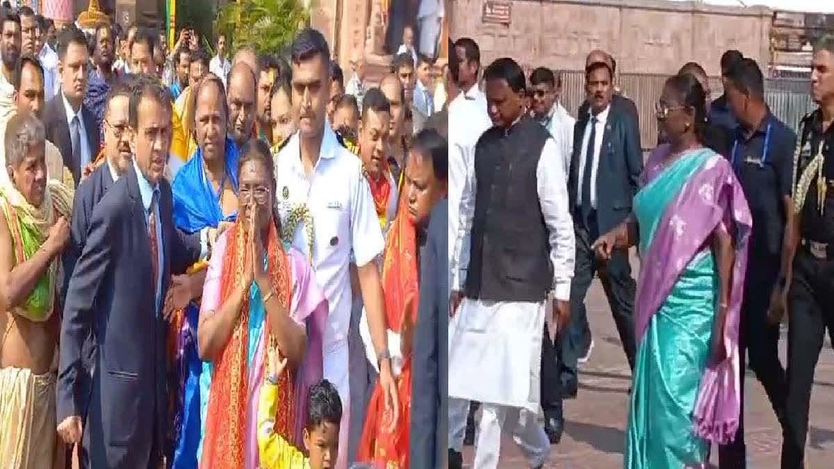 ୫ ଦିନିଆ ଓଡ଼ିଶା ଗସ୍ତରେ ଆସିଥିବା ରାଷ୍ଟ୍ରପତି ଦ୍ରୌପଦୀ ମୁର୍ମୁ ଆଜି ଦ୍ବିତୀୟ ଦିନରେ ପୁରୀରେ ପହଞ୍ଚିବା ପରେ ବଡ଼ଦାଣ୍ଡରେ ଚାଲିଚାଲି ଶ୍ରୀମନ୍ଦିର ଅଭିମୁଖେ ଯାଇଥିଲେ । ଶ୍ରୀମନ୍ଦିର ଯାଇ ରିତୀନୀତି ଅନୁସାରେ ଚତୁର୍ଦ୍ଧା ବିଗ୍ରହଙ୍କ ସହ ମାଆ ଲକ୍ଷ୍ମୀଙ୍କର ମଧ୍ୟ ଦର୍ଶନ କରିବା ସହ ପୂଜାର୍ଚ୍ଚନା କରିଛନ୍ତି । ପରେ ମନ୍ଦିର ପ୍ରଶାସନ ପକ୍ଷରୁ ରାଷ୍ଟ୍ରପତିଙ୍କୁ ଉପହାର ସ୍ବରୁପ ପଟ୍ଟଚିତ୍ର ପ୍ରଦାନ କରାଯାଇଥିଲା । ସେଠାରୁ ବାହାରି ବର୍ତ୍ତମାନ ଗୋପବନ୍ଧୁ ଆର୍ୟୁବୈଦିକ ମହାବିଦ୍ୟାଳୟରେ ପହଞ୍ଚିଛନ୍ତି ରାଷ୍ଟ୍ରପତି ଦ୍ରୌପଦୀ ମୁର୍ମୁ ।